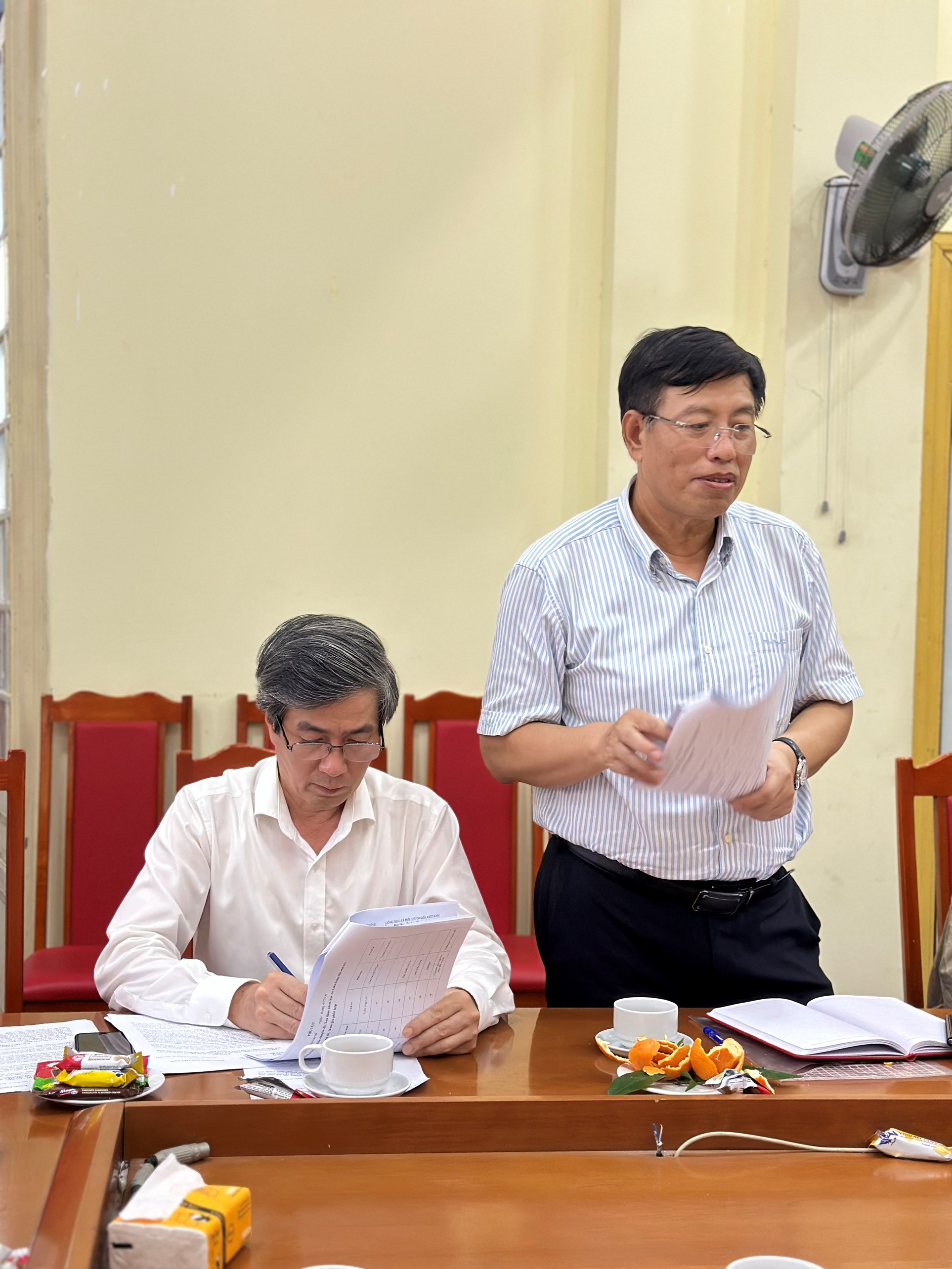 Đồng chí Bùi Thanh Tùng - Bí thư Đảng đoàn, Chủ tịch Liên hiệp Hội báo cáo kết quả hoạt động của Liên hiệp Hội tại buổi làm việc.