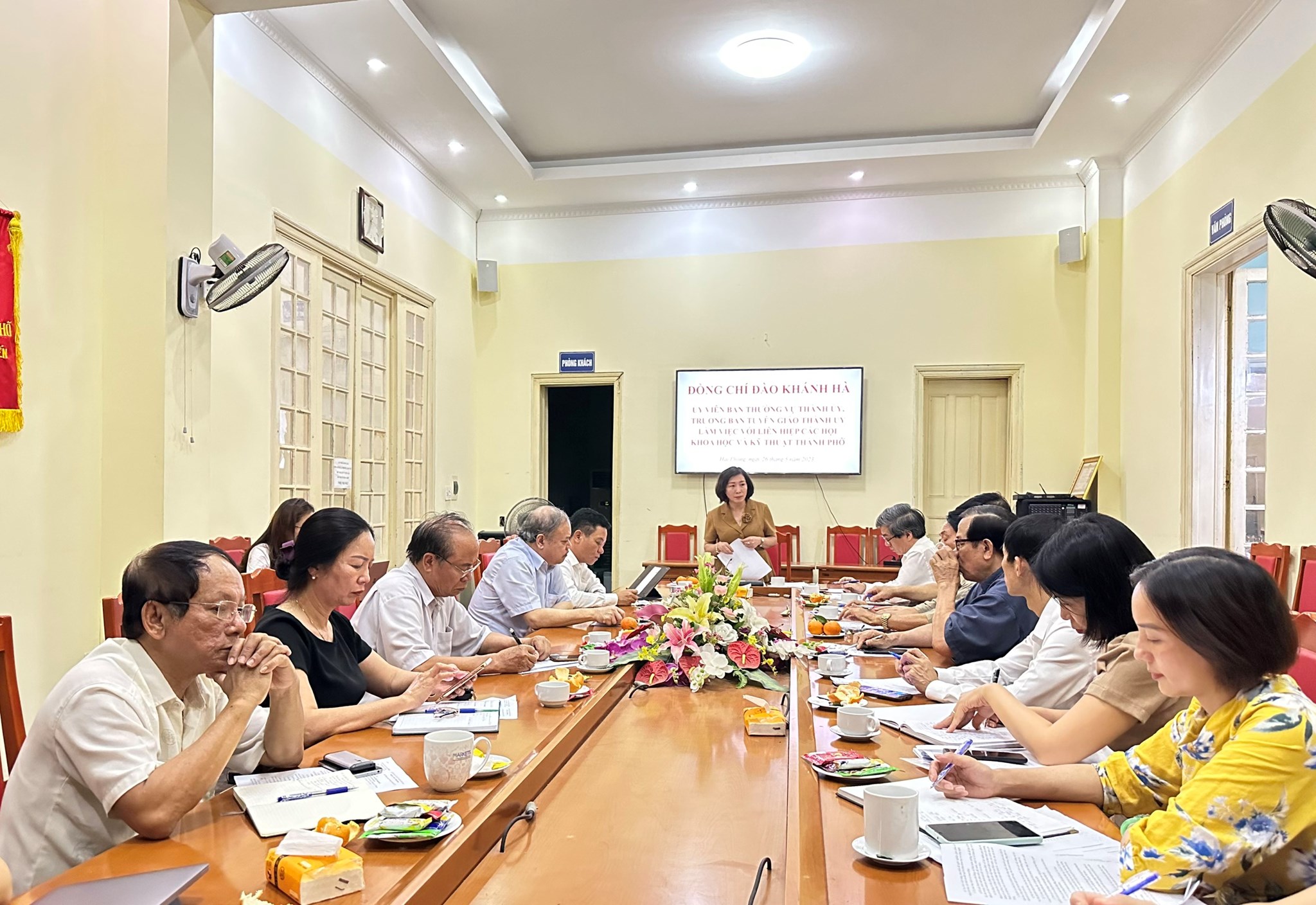 Sáng 26/5, đồng chí Đào Khánh Hà, Ủy viên Ban Thường vụ Thành ủy, Trưởng Ban Tuyên giáo Thành ủy chủ trì buổi làm việc với Liên hiệp các Hội Khoa học và Kỹ thuật thành phố (Liên hiệp Hội) về công tác lãnh đạo, chỉ đạo của Đảng đoàn Liên hiệp Hội trong thực hiện các Chỉ thị, Nghị quyết, Văn bản của Trung ương, Thành ủy; kết quả hoạt động từ đầu nhiệm kỳ (2019-2024) đến nay, nhiệm vụ, giải pháp trọng tâm thời gian tới; tình hình tư tưởng, tâm tư, nguyện vọng của cán bộ, viên chức lao động Liên hiệp Hội. Dự buổi làm việc có TS. Bùi Thanh Tùng - Bí thư Đảng đoàn, Chủ tịch Liên hiệp Hội, các đồng chí ủy viên Ban Thường vụ Liên hiệp Hội và đại diện lãnh đạo các Sở, ngành liên quan.