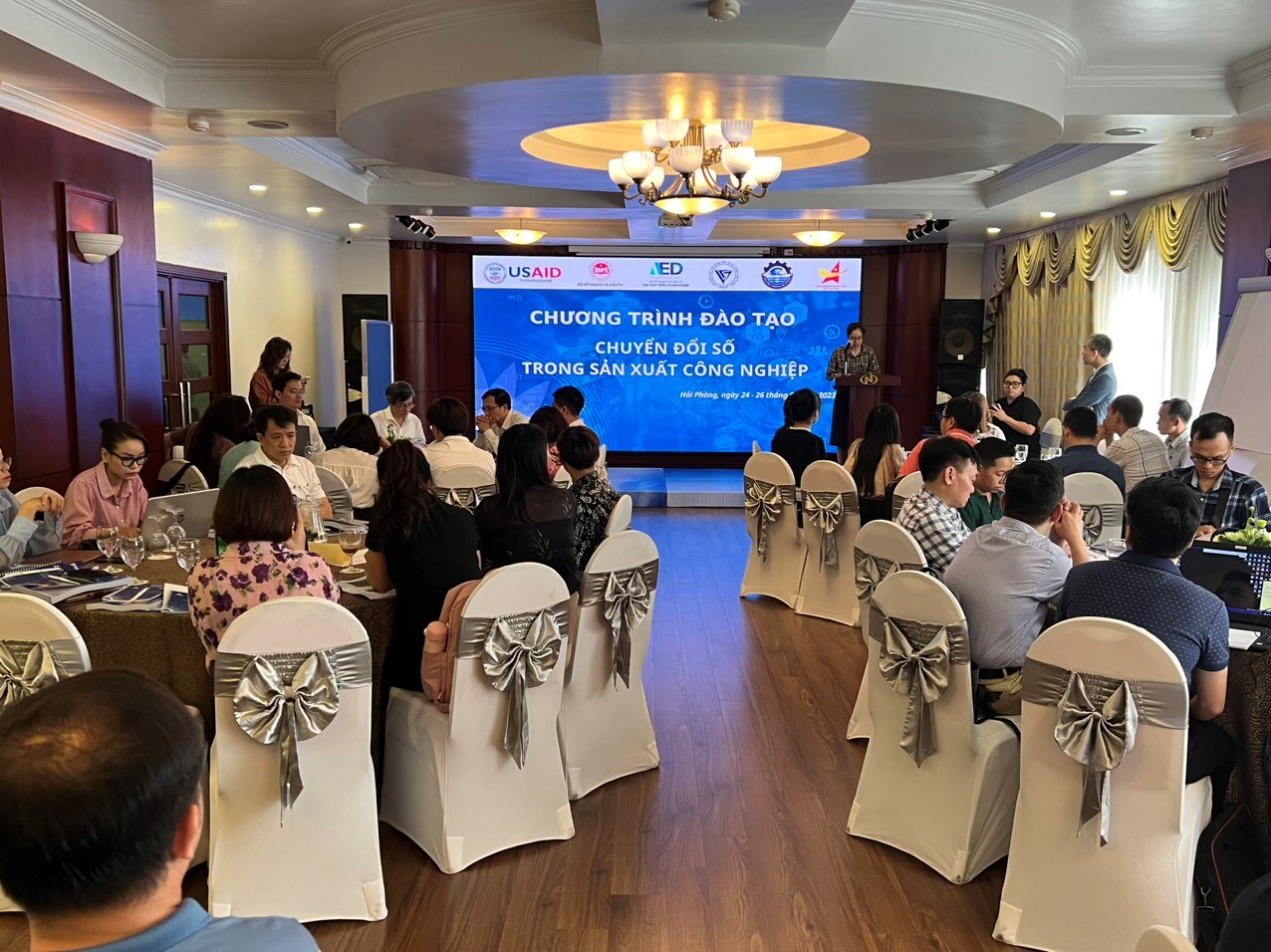 Trong 3 ngày (từ 24 đến 26-5), gần 80 doanh nghiệp công nghiệp nhỏ và vừa trên địa bàn Hải Phòng, Hà Nội, Vĩnh Phúc được các chuyên gia dự án IPSC giới thiệu chương trình Hỗ trợ doanh nghiệp chuyển đổi số giai đoạn 2021-2025 của Bộ Kế hoạch và Đầu tư; tổng quan dự án IPSC và gói hỗ trợ Chuyển đổi số và áp dụng các giải pháp công nghệ trong sản xuất - kinh doanh. Học viên được học tập, nghiên cứu 9 chuyên đề lớn gồm: Phát triển doanh nghiệp sản xuất công nghiệp trong thời đại cách mạng công nghiệp 4.0; các giải pháp chuyển đổi số trong sản xuất công nghiệp; giải pháp chuyển đổi số quản trị nguồn nhân lực; tư duy chuyển đổi số và đề xuất lộ trình chuyển đổi số cho doanh nghiệp; mô hình kinh tế tuần hoàn và phát triển bền vững (ESG)…