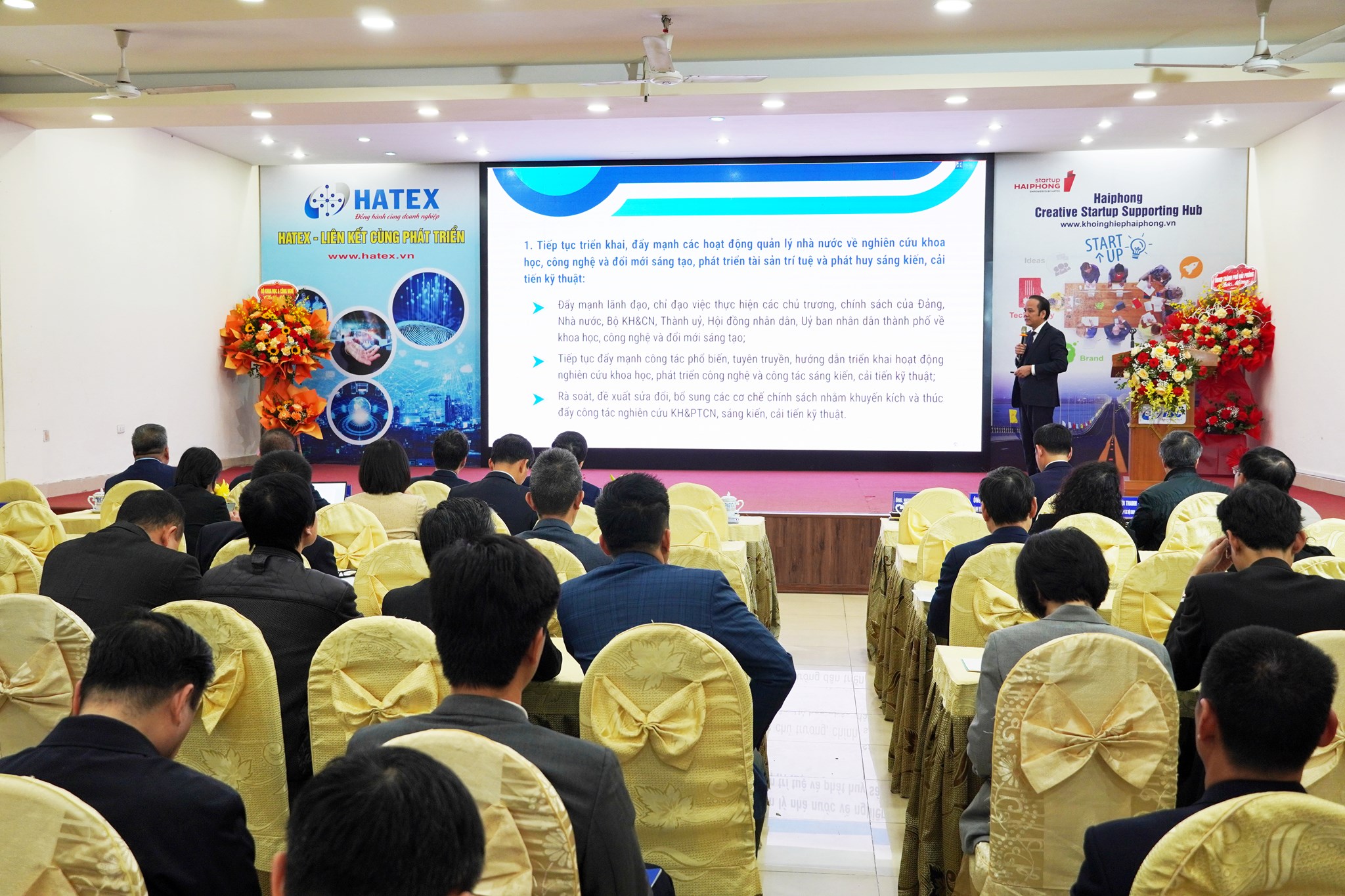 Dự Hội nghị có đồng chí Hoàng Minh Cường, Phó Chủ tịch Ủy ban nhân dân (UBND) thành phố; đồng chí Lưu Hoàng Long, Cục trưởng Cục Sở hữu trí tuệ; đồng chí Chu Thúc Đạt, Vụ trưởng Vụ Ứng dụng công nghệ và Tiến bộ kỹ thuật cùng đại diện các Sở, ngành doanh nghiệp và đơn vị liên quan.