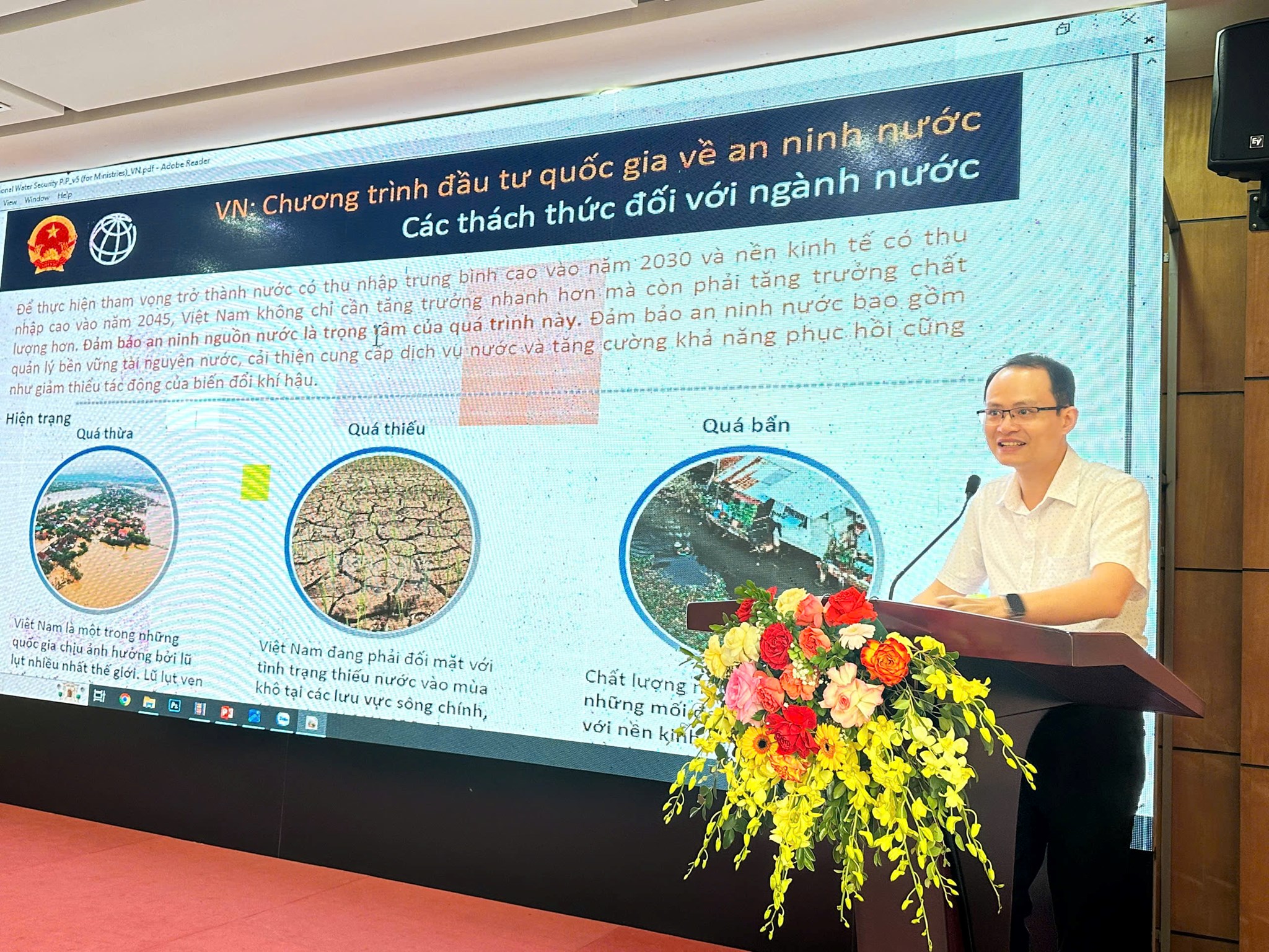 Bên cạnh đó, TS. Bùi Thanh Tùng nhấn mạnh việc tổ chức hội thảo nhằm tiếp thu, tổng hợp ý kiến đóng góp của các chuyên gia, nhà khoa học, cơ quan quản lý, làm cơ sở khoa học đề xuất các giải pháp bảo vệ nguồn nước ngọt thành phố theo tinh thần Kết luận số 36 của Bộ Chính trị về bảo đảm an ninh nguồn nước, an toàn đập và hồ chứa nước đến năm 2030, tầm nhìn đến năm 2045. Theo đó, mục tiêu đến năm 2045, chủ động được nguồn nước phục vụ dân sinh và phát triển kinh tế- xã hội; bảo đảm hộ gia đình ở nông thôn được sử dụng nước sạch theo quy chuẩn; dự báo, cảnh báo dài hạn để xử lý ô nhiễm, suy thoái, cạn kiệt nguồn nước, ứng phó với thiên tai, biến đổi khí hậu; kiểm soát và khắc phục tình trạng suy thoái, ô nhiễm nguồn nước tại các lưu vực sông, hệ thống công trình thuỷ lợi; hoàn thiện chính sách về nước đồng bộ, thống nhất liên ngành, liên vùng, bảo đảm an ninh nguồn nước.