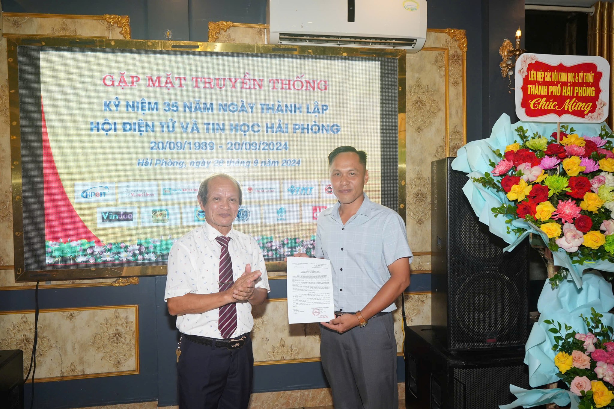 Tối 28/9, Hội Điện tử và Tin Học Hải Phòng tổ chức gặp mặt kỷ niệm 35 năm ngày thành lập (20/9/1989 – 20/9/2024), trao Quyết định công nhận hội viên mới và trao tặng kỷ niệm chương cho các chi hội, hội viên, đơn vị. Dự gặp mặt có TS. Bùi Thanh Tùng, Chủ tịch Liên hiệp các Hội Khoa học và Kỹ thuật thành phố.