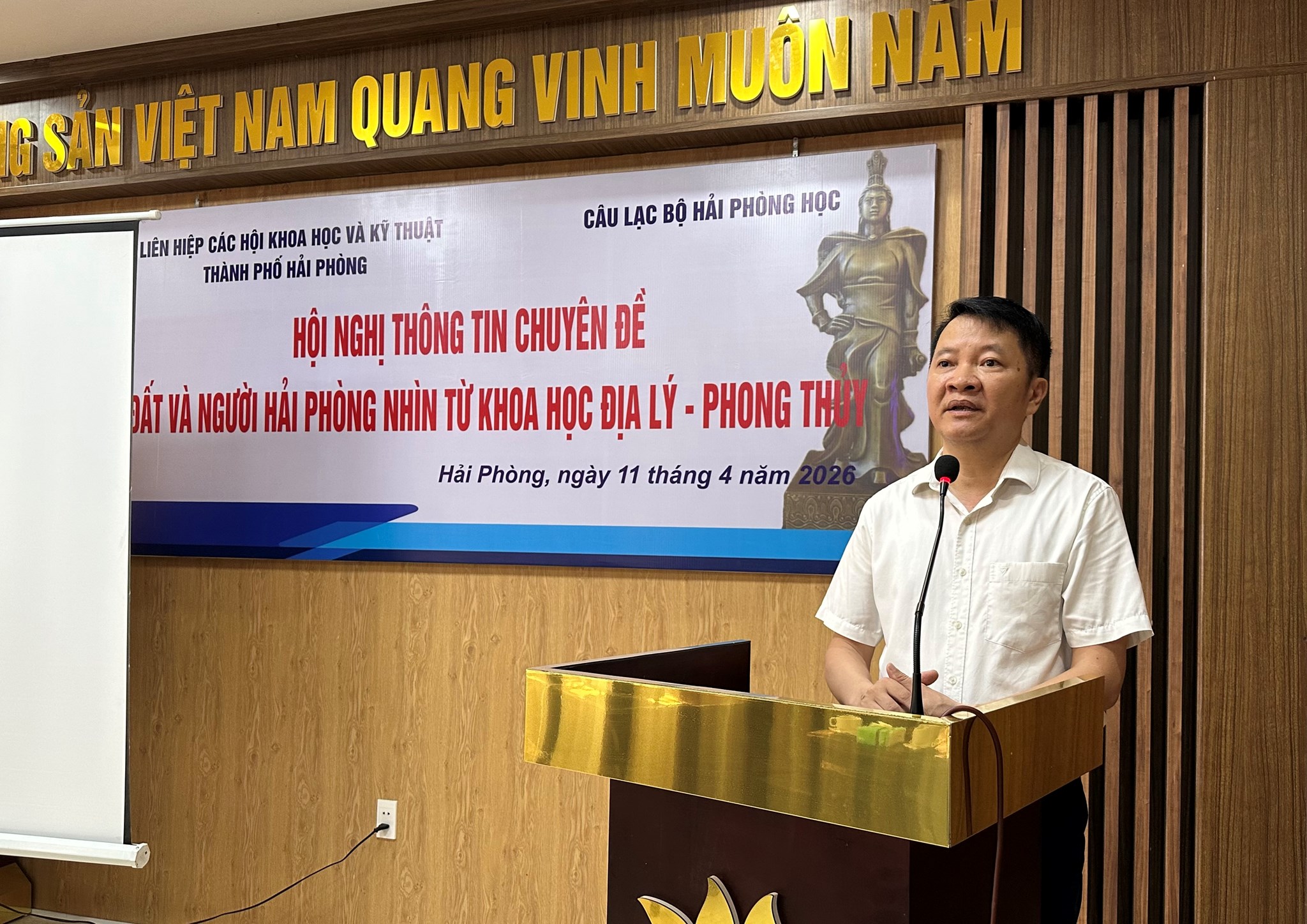 Ngày 11/4, Liên hiệp các Hội Khoa học và Kỹ thuật thành phố Hải Phòng phối hợp với Câu lạc bộ Hải Phòng học tổ chức Hội nghị thông tin chuyên đề “Đất và Người Hải Phòng nhìn từ khoa học địa lý - phong thuỷ”. Hội nghị thu hút sự quan tâm của đông đảo các nhà khoa học, chuyên gia và những người yêu mến văn hóa lịch sử đất Cảng.