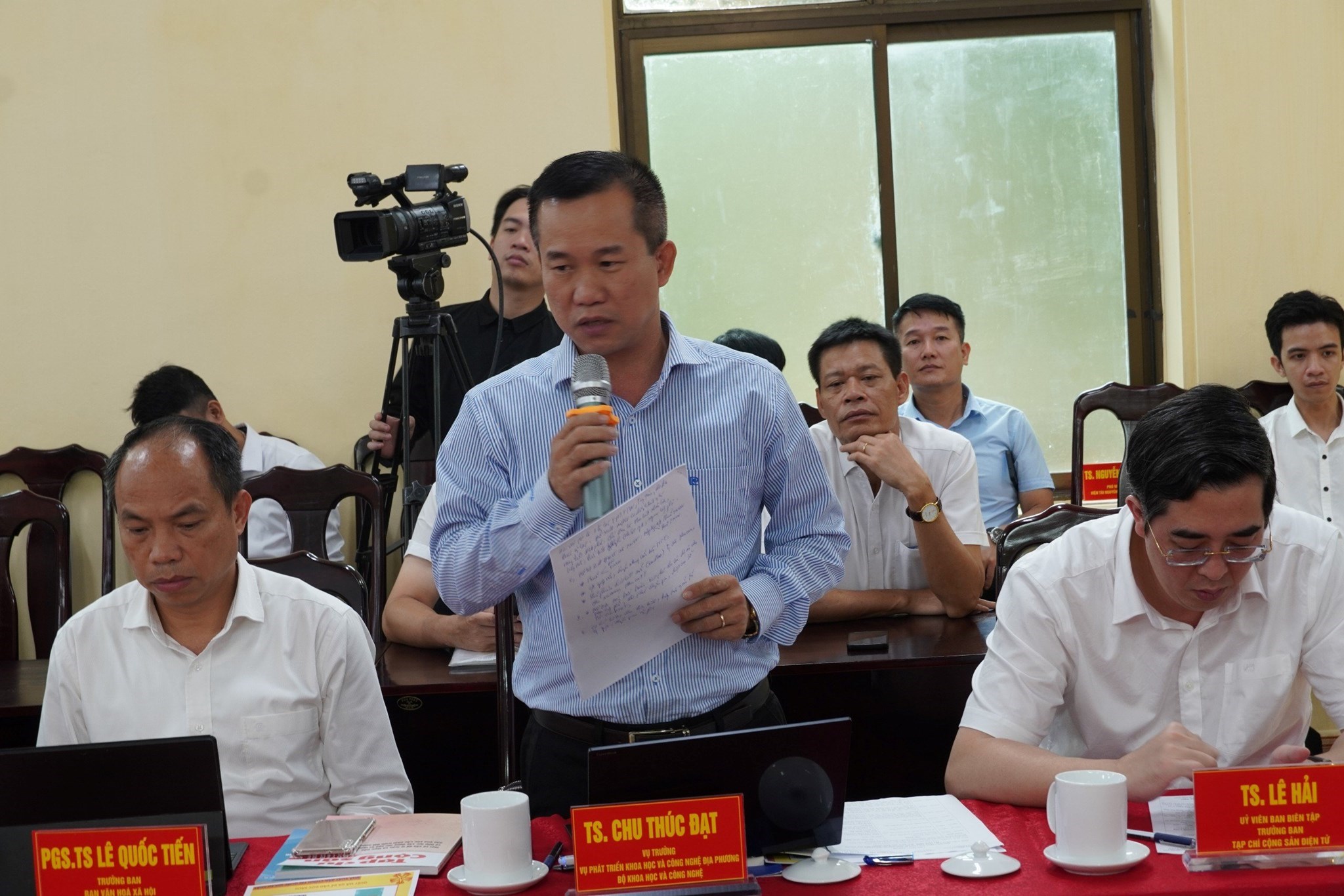 Tham dự Hội thảo, về phía Trung ương có Thượng tướng, PGS.TS Nguyễn Văn Thành - Phó Chủ tịch Hội đồng Lý luận Trung ương, nguyên Ủy viên Trung ương Đảng, nguyên Thứ trưởng Bộ Công an; PGS.TS Vũ Trọng Lâm - Giám đốc, Tổng Biên tập Nhà xuất bản Chính trị quốc gia Sự thật; cùng lãnh đạo các Cục, Vụ, Viện. Về phía thành phố có PGS. TS Lê Quốc Tiến - Ủy viên Thành ủy, Trưởng ban Ban Văn hóa - Xã hội HĐND thành phố cùng đại diện các sở, ngành liên quan. đồng chí Nguyễn Đình Vinh - Phó Giám đốc Sở KH&CN; TS. Lê Xuân Sang - Phó Viện trưởng Viện Kinh tế Việt Nam; đồng chí Nguyễn Kim Pha - Hiệu trưởng Trường Chính trị Tô Hiệu đồng chủ trì Hội thảo.