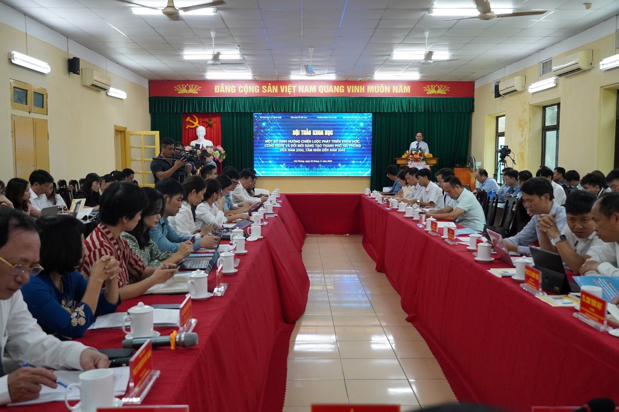 Sáng 03/11, tại Trường Chính trị Tô Hiệu, Sở Khoa học và Công nghệ (KH&CN) phối hợp với Viện Kinh tế Việt Nam, Trường Chính trị Tô Hiệu và Nhà xuất bản Chính trị quốc gia Sự thật tổ chức Hội thảo khoa học “Một số định hướng chiến lược phát triển khoa học, công nghệ và đổi mới sáng tạo thành phố Hải Phòng đến năm 2030, tầm nhìn đến năm 2045”.