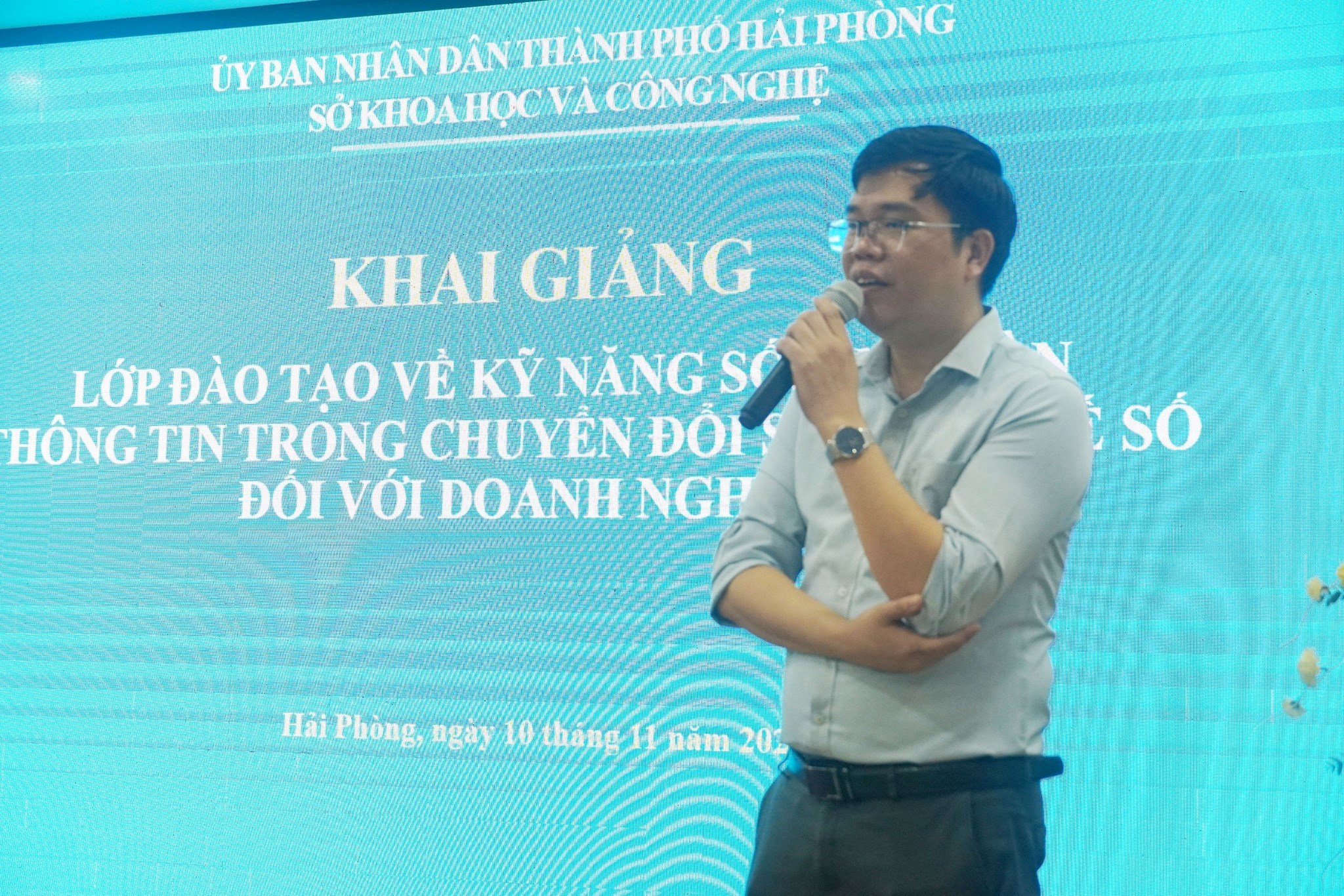 Phát biểu khai mạc, Giám đốc Sở KH&CN Trần Quang Tuấn cho biết: Thành phố Hải Phòng hiện có hơn 37.000 doanh nghiệp đang hoạt động, với khoảng 97% doanh nghiệp nhỏ và vừa. Trong bối cảnh dịch COVID-19 và những tác động mà nó mang lại, các doanh nghiệp nhỏ và vừa với sức cạnh tranh còn thấp cũng trở nên khó khăn; do vậy, các doanh nghiệp cần phải đổi mới mô hình kinh doanh trên cơ sở chuyển dần các hoạt động sản xuất kinh doanh truyền thống sang các phương thức dựa trên các nền tảng số. Do thời gian đào tạo ngắn, lượng kiến thức truyền tải là khá nhiều, đồng chí Giám đốc Sở đề nghị các đồng chí học viên dự học đầy đủ, nghiêm túc chấp hành nội quy khóa tập huấn, hăng hái phát biểu thảo luận, tiếp thu tốt các kiến thức để triển khai, áp dụng có hiệu quả vào cơ quan, đơn vị đang công tác.