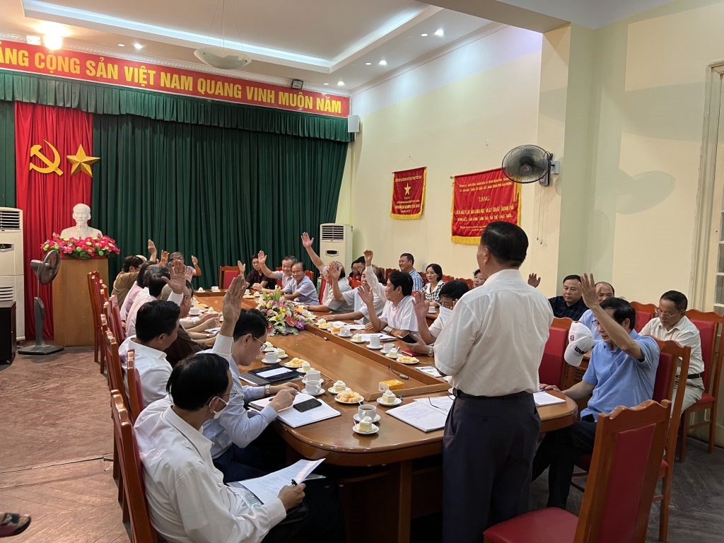 Các đồng chí ủy viên BCH Liên hiệp Hội biểu quyết bằng hình thức giơ tay
