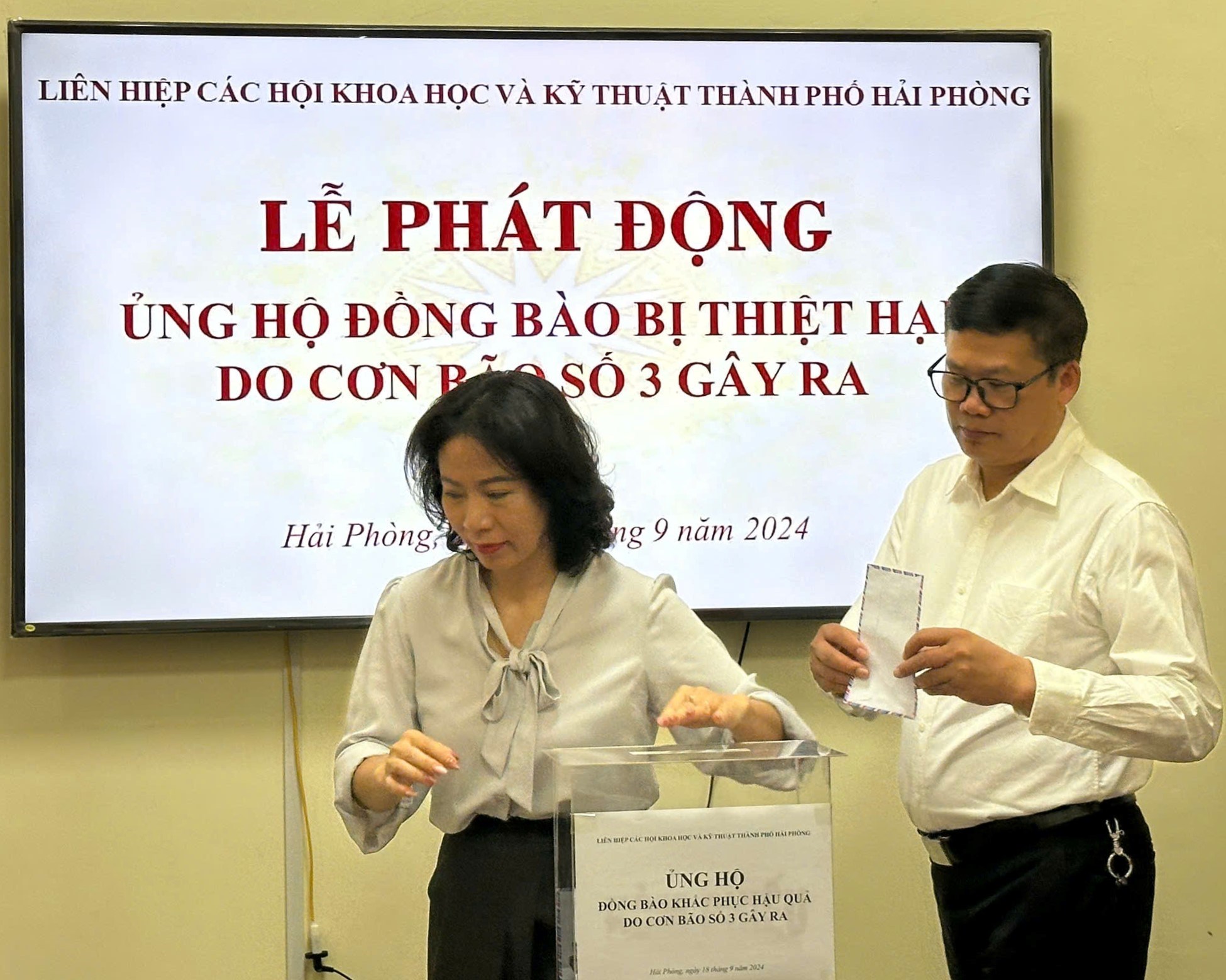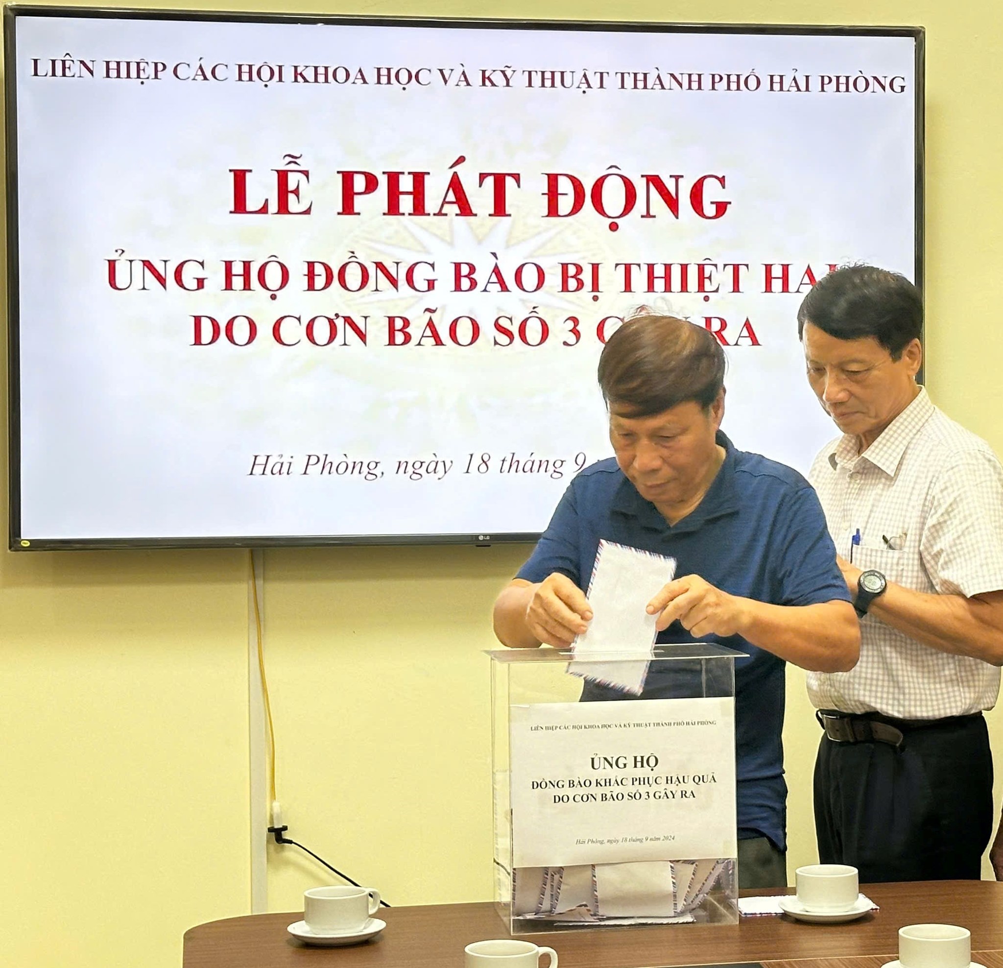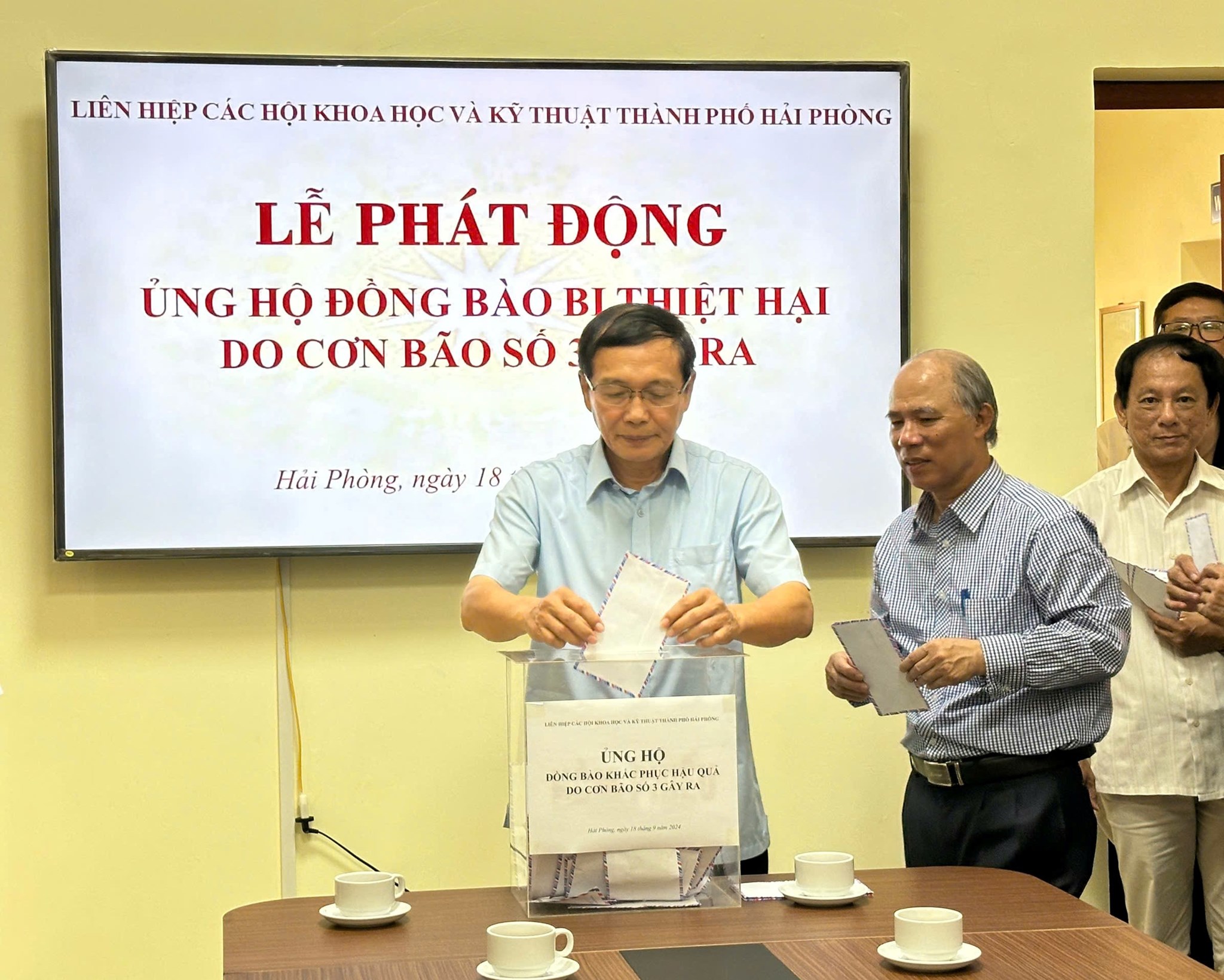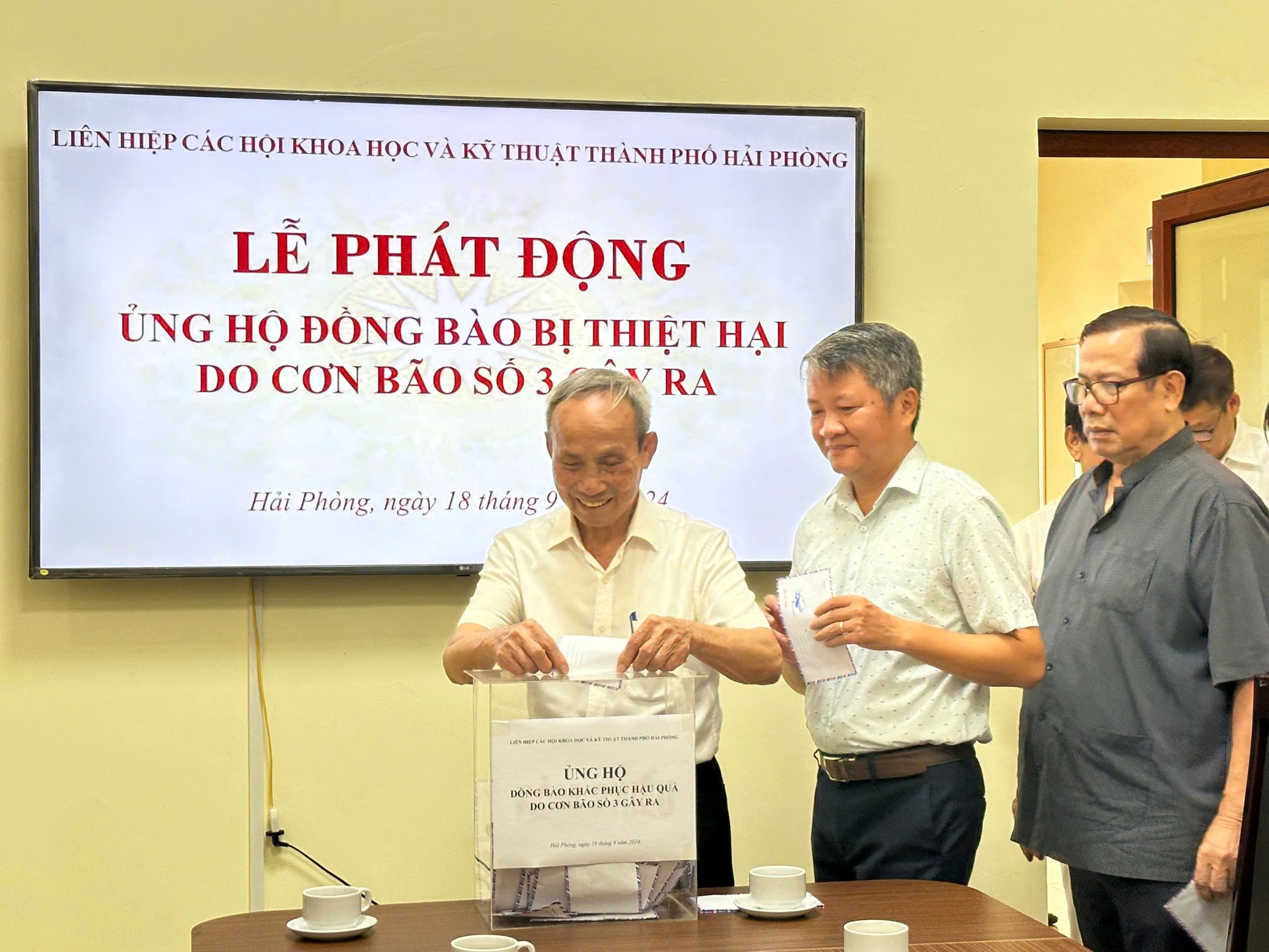 Sáng ngày 18/9, Liên hiệp các Hội Khoa học và Kỹ thuật thành phố Hải Phòng (Liên hiệp Hội) tổ chức Lễ phát động ủng hộ đồng bào khắc phục hậu quả do cơn bão số 3 gây ra. Tham dự buổi lễ có TS. Bùi Thanh Tùng - Bí thư Đảng đoàn, Chủ tịch Liên hiệp Hội; các đồng chí Thường trực Liên hiệp Hội, đại diện lãnh đạo các Hội thành viên, trung tâm, đơn vị trực thuộc và cán bộ viên chức, người lao động cơ quan Liên hiệp Hội Hải Phòng.