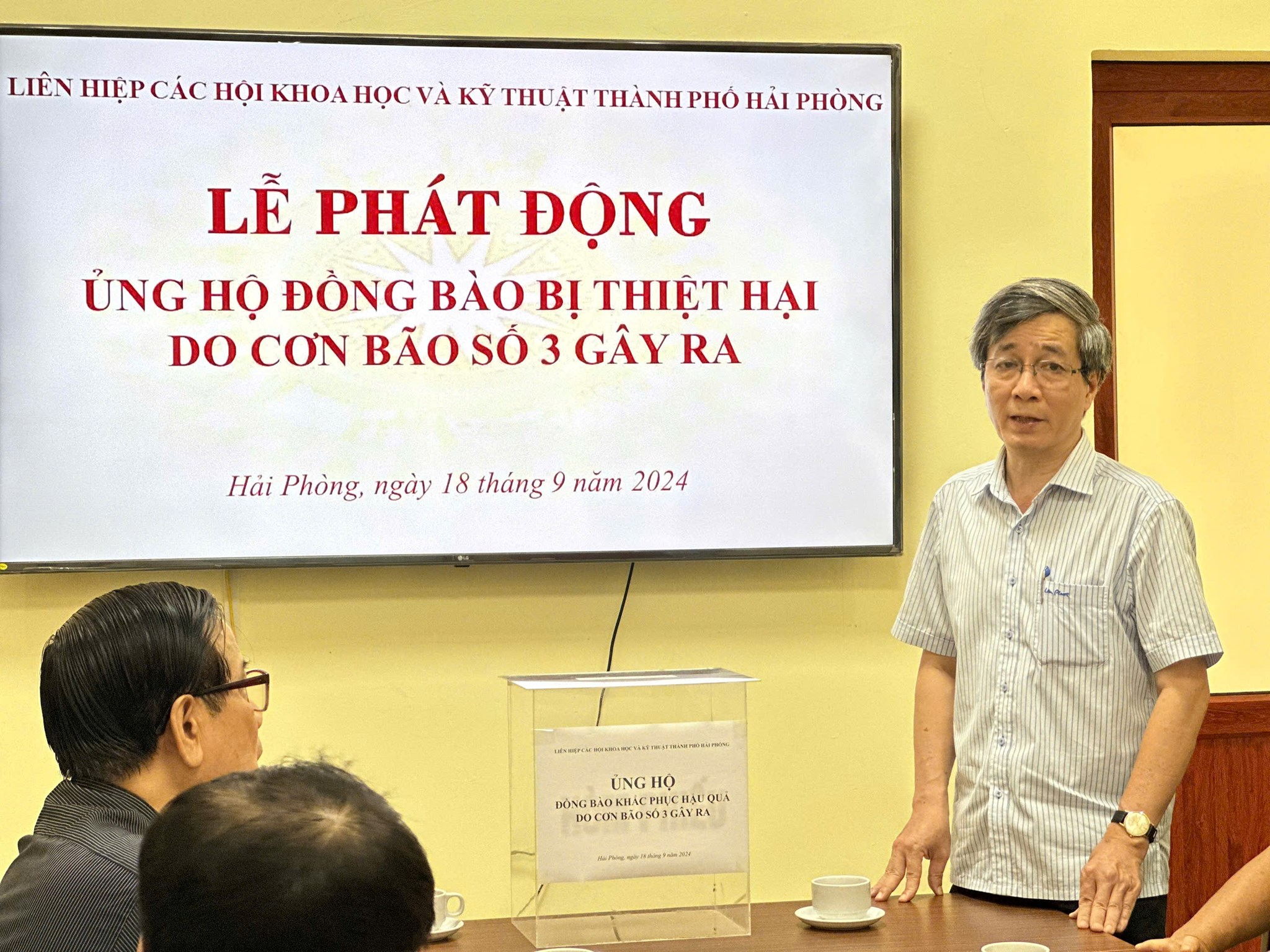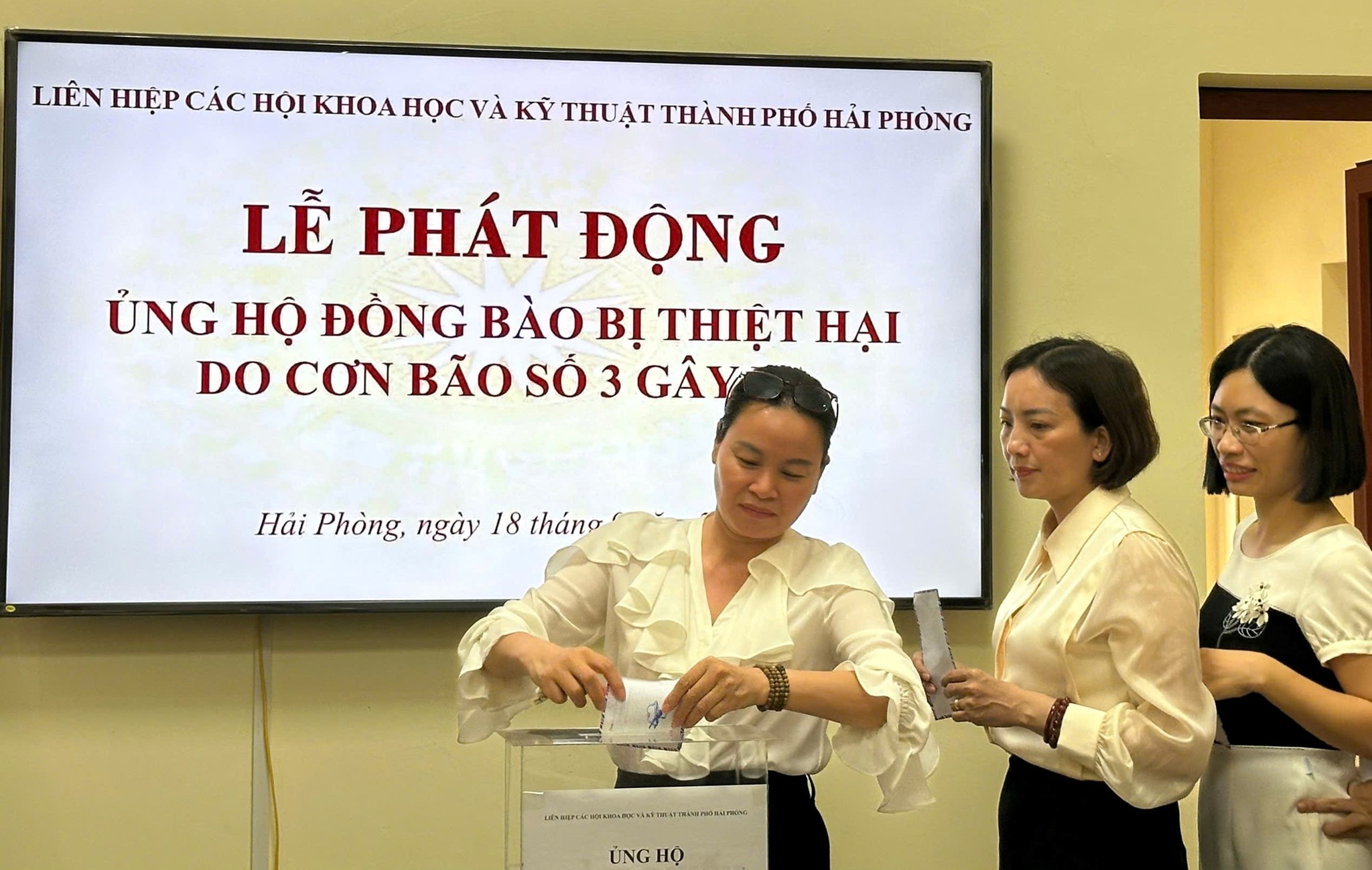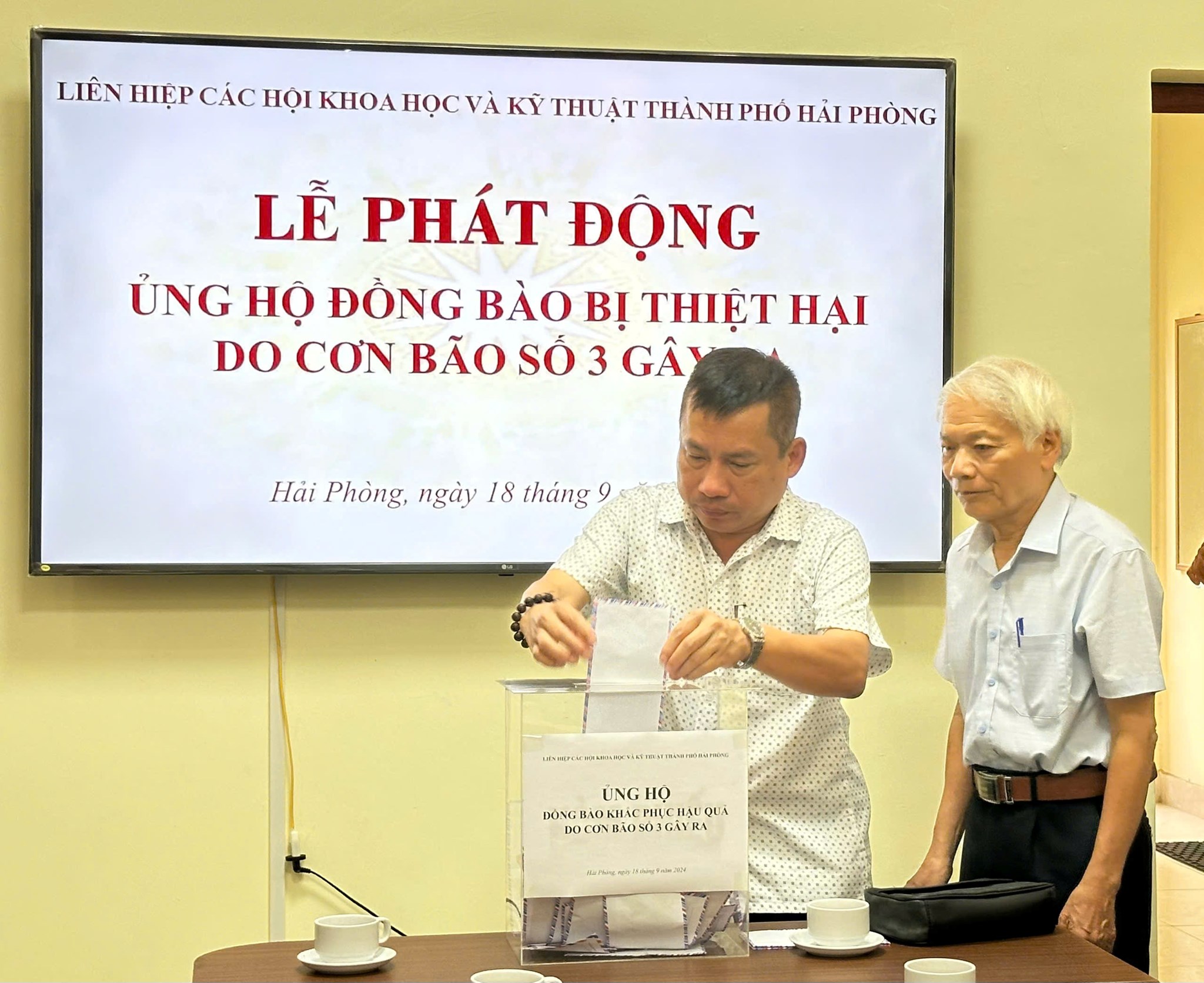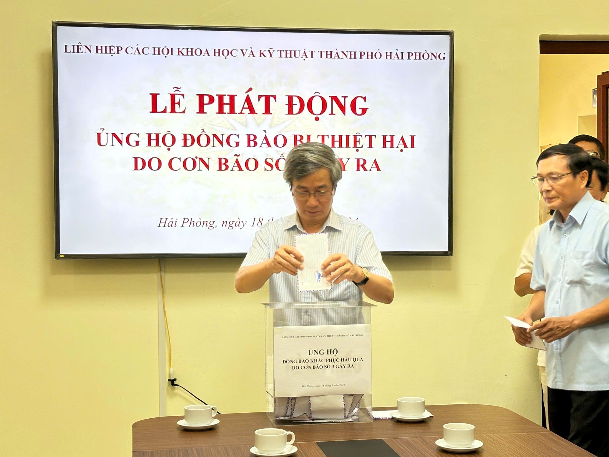 Sáng ngày 18/9, Liên hiệp các Hội Khoa học và Kỹ thuật thành phố Hải Phòng (Liên hiệp Hội) tổ chức Lễ phát động ủng hộ đồng bào khắc phục hậu quả do cơn bão số 3 gây ra. Tham dự buổi lễ có TS. Bùi Thanh Tùng - Bí thư Đảng đoàn, Chủ tịch Liên hiệp Hội; các đồng chí Thường trực Liên hiệp Hội, đại diện lãnh đạo các Hội thành viên, trung tâm, đơn vị trực thuộc và cán bộ viên chức, người lao động cơ quan Liên hiệp Hội Hải Phòng.