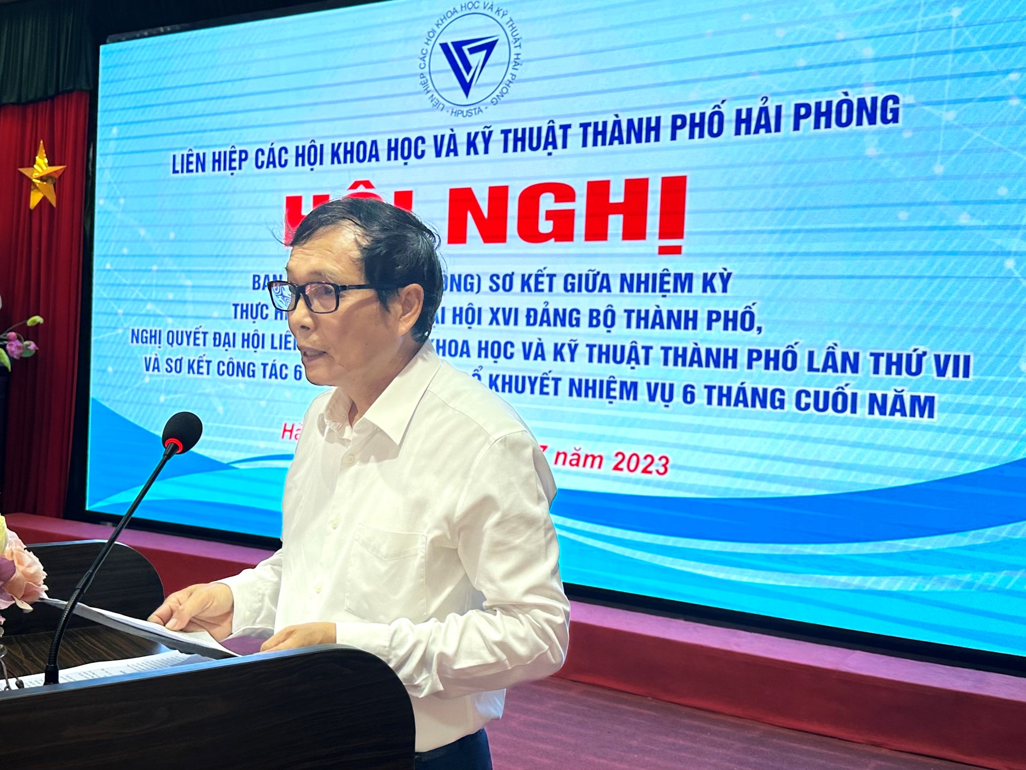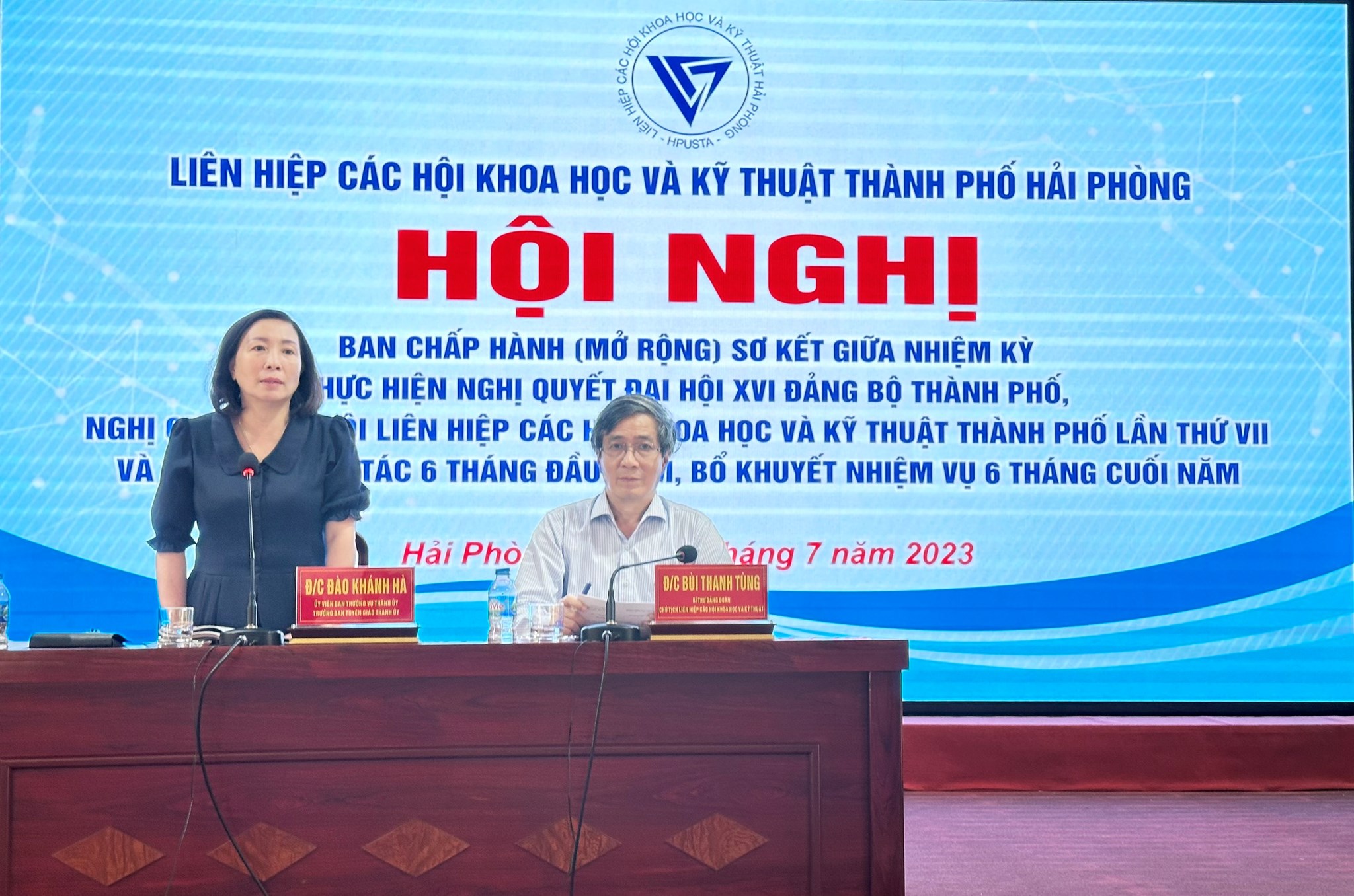 Chiều 13/7, Liên hiệp các Hội Khoa học và Kỹ thuật thành phố tổ chức Hội nghị Ban Chấp hành (mở rộng) sơ kết giữa nhiệm kỳ thực hiện Nghị quyết Đại hội XVI Đảng bộ thành phố, Nghị quyết Đại hội Liên hiệp các Hội Khoa học và Kỹ thuật thành phố lần thứ VII và sơ kết công tác 6 tháng đầu năm, bổ khuyết nhiệm vụ 6 tháng cuối năm 2023. Tiến sĩ Bùi Thanh Tùng, Chủ tịch Liên hiệp các Hội Khoa học và Kỹ thuật thành phố chủ trì Hội nghị. Tới dự và chỉ đạo Hội nghị có đồng chí Đào Khánh Hà, Ủy viên Ban Thường vụ Thành ủy, Trưởng Ban Tuyên giáo Thành ủy.