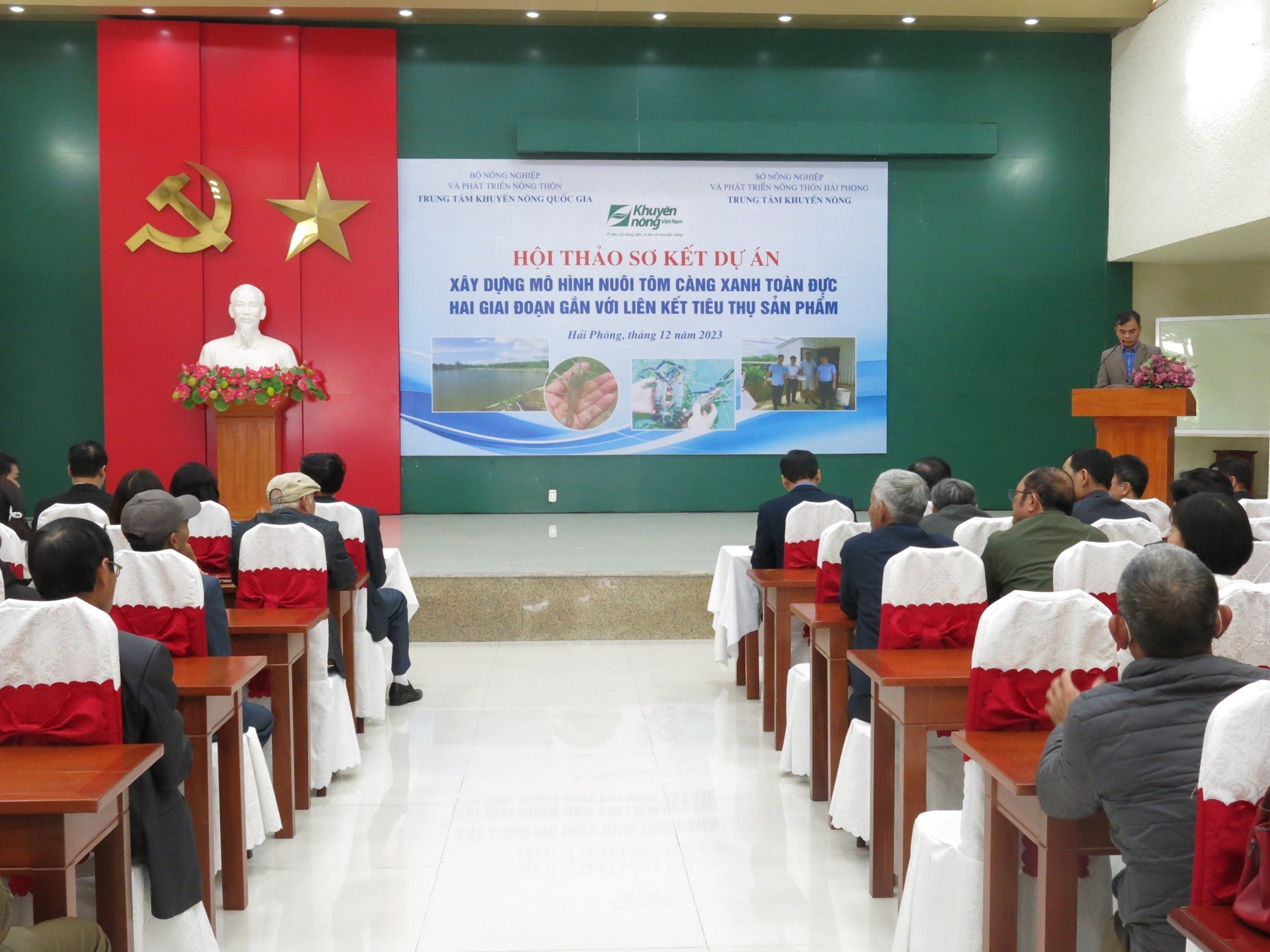 Sáng ngày 08/12, Trung tâm Khuyến nông Hải Phòng tổ chức Hội thảo Sơ kết dự án xây dựng mô hình nuôi tôm càng xanh toàn đực hai giai đoạn gắn với liên kết tiêu thụ sản phẩm. Dự hội thảo có đại điện lãnh đạo Sở Nông nghiệp và Phát triển nông thôn Hải Phòng và một số đơn vị, cơ quan chức năng, các hộ sản xuất tiêu biểu.