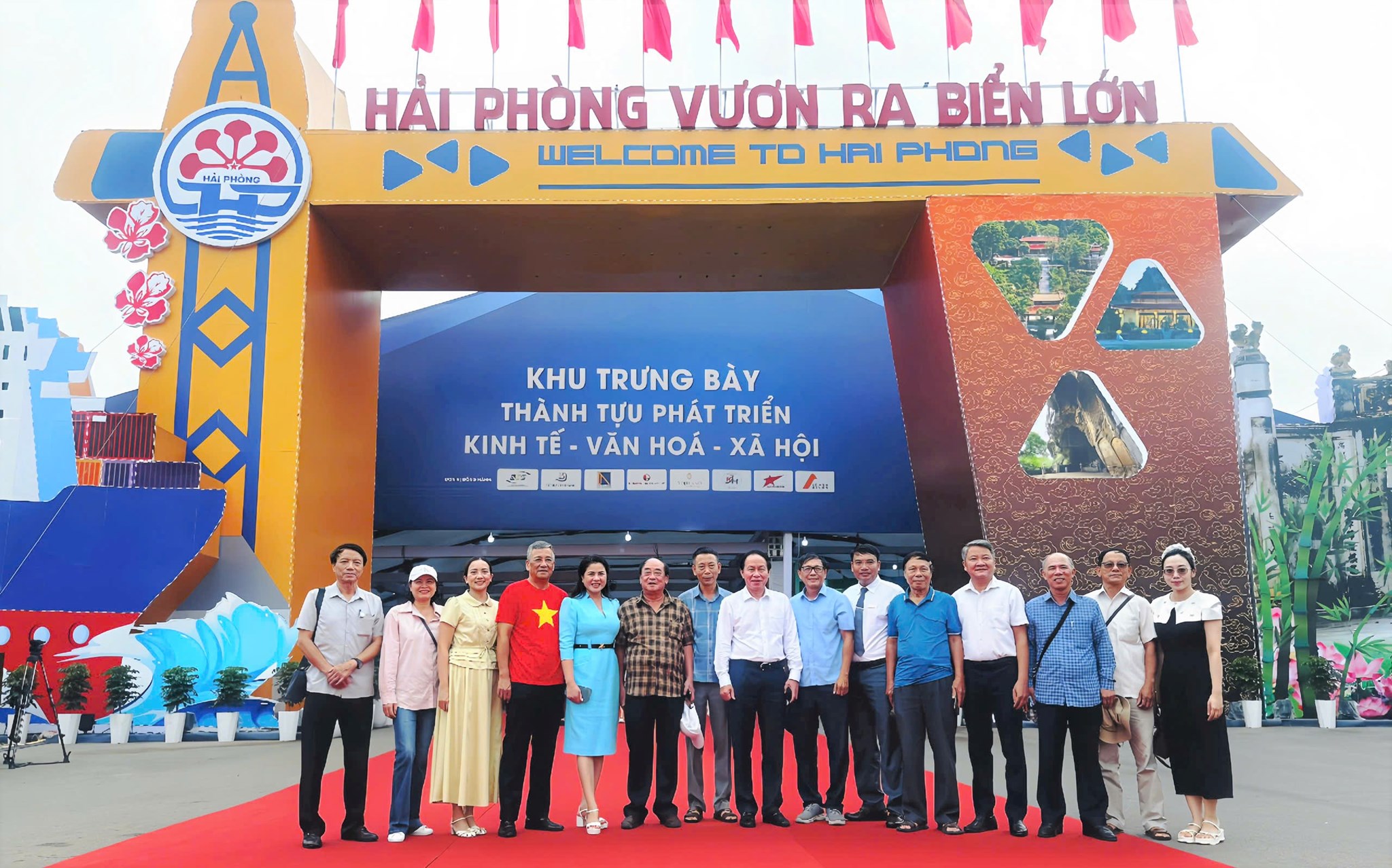 Đoàn tham quan của Liên hiệp Hội thành phố chụp ảnh lưu niệm cùng đồng chí Lê Tiến Châu - Ủy viên Trung ương Đảng, Bí thư Thành ủy Hải Phòng