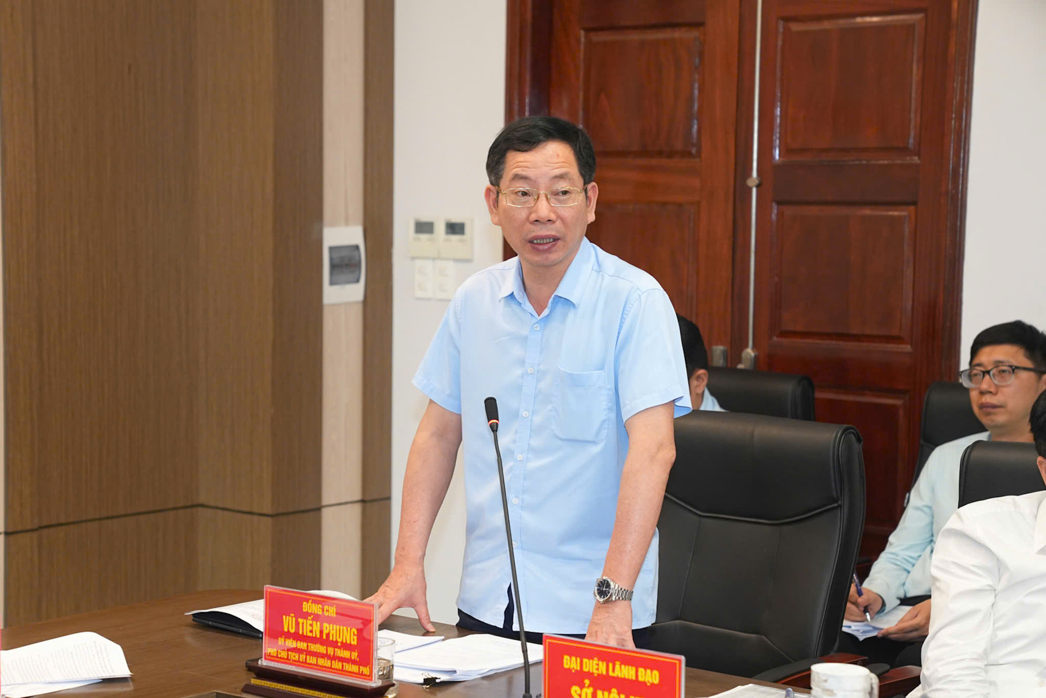 Đồng chí Vũ Tiến Phụng, Ủy viên Ban Thường vụ Thành ủy, Phó Chủ tịch UBND thành phố phát biểu tại buổi làm việc.